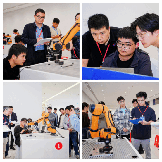 在实操环节,现场20台协作机器人同步运行,各参赛队需在30分钟内完成设备调试,5分钟内完成任务演示,裁判组根据操作精度、创新性及时间进行评分。这一设置不仅呼应了智能制造企业实际生产场景,也体现了学校在产教融合与工程实践教育方面的深入探索。