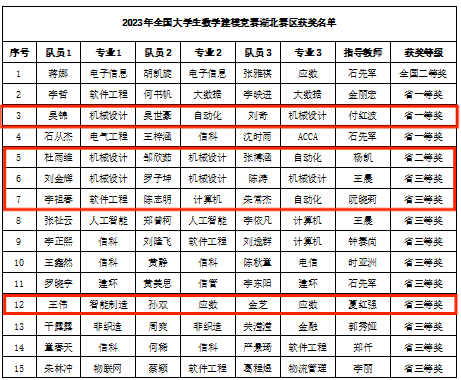 近日,2023年“高教社杯”全国大学生数学建模竞赛成绩揭晓,我校共有45名学子在比赛中获得省级以上奖励,我们学子组建的5个团队获得良好成绩。