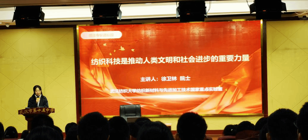 传递科学精神,培育创新人才。2023年11月24日下午,中国工程院院士、校长徐卫林在武汉市第十五中以“纺织科技是推动人类文明和社会进步的重要力量”为题,带领高中生走进纺织科技的世界。