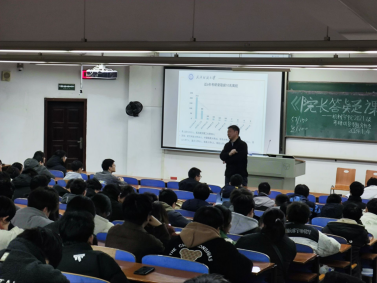余院长首先向同学们介绍了近五年学院考研报名、录取的整体情况,深入剖析了当前考研形势和相关高校的招生情况,机械、自动化等相关学科硕士招生情况,并就学硕专硕的选择、城市选择、面临问题、备考效率、复习方法五个方面为同学们进行有针对性的指导。他建议同学们要利用寒假时间查阅与备考专业相关的信息,尽早开始准备。鼓励大家珍惜时间,制订适合自己的学习计划,提高备考效率。