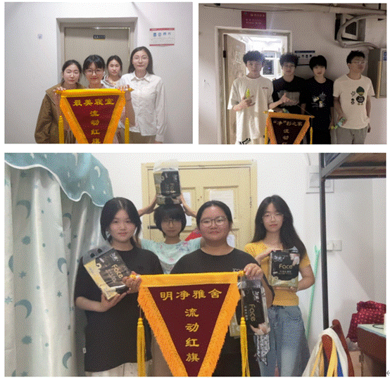 经过综合评审,学院对表现尤为突出的寝室进行了表彰。前三名寝室分别被授予“最美寝室”、“明净雅舍”和“‘净’彩之家”的荣誉称号,并获颁流动红旗及奖品。为强化推进安全文明寝室的持续建设,活动特别设立了“流动红旗”保持机制,不仅极大地提升了学生的参与热情,更将寝室环境美化与学生日常行为养成、集体荣誉感培育深度融合,有力推动了寝室建设从外在的“形态整洁”向内涵丰富的“文化浸润”转型升级。