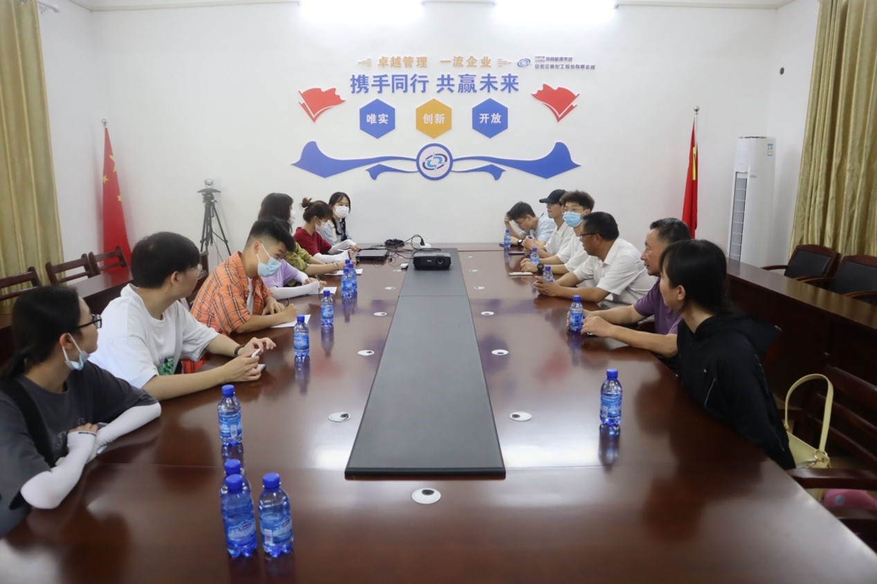 在了解了具体生产过程后,团队与薛经理移步会议室进行更深层次的探讨。首先,薛经理向实践团队介绍了公司基本情况,粉状乳化炸药产品在湖北省仅帅力一家,由于工业要求严格,工序复杂,粉状乳化炸药,威力巨大,并不是任何公司都能制作。在炸药输出方面,产品输出需要行政许可的审批,其次是销售公司的销售模式。从2007年以后销售放开政策,定量生产,在2017年达到峰值,售出400多万吨。出售方面市场严格管理、备案,由公安审核,管控,地理位置上,企业交通便利、四通八达,运输也较为方便。帅力化工有限公司参股中国兵器工业集团特种能源集团,安徽江南化工股份有限公司。过去行业落后,现有国家政策支持,将帅力收为国企。由于炸药的危险性,车间建在农村较多,在自动化方面的技术需求,企业从头到尾的行业发展需自动化、机电一体化来缓解人员问题,因此,团队对自身做出总结:不仅局限于自身专业的发展,广泛涉猎、在实践中学习,在实践中成长。同时,企业也不断向行业标准靠拢,如推广散装炸药、混装炸药,且在根据当地地形、相关政策做出调整,早日向高度信息化、自动化进军。