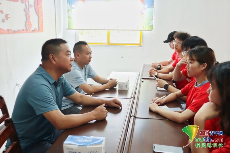 图为实践团队就三农政策实施过程中的典型问题向任书记进行采访,了解当地三农政策实施情况。中国青年网通讯员 吴家萱 供图
