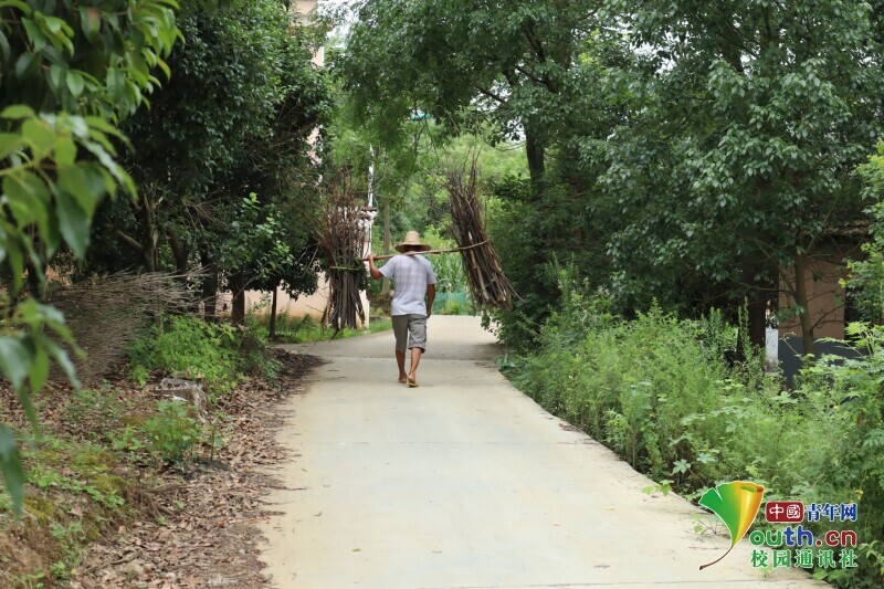 图为在走访完毕后返程途中遇到一位老人家从山上拾材回家的情景。 中国青年网通讯员 吴家萱 供图