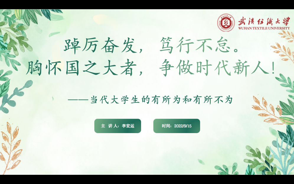 最后,李老师表达了对22新生们的美好祝愿,祝愿新生学业进步,步步高升。同时告诫广大青年朋友要以习近平新时代中国特色社会主义思想为指引,坚定理想、增长才干,以自强不息的精神、朝气蓬勃的姿态,奋力谱写中华民族伟大复兴进程中激昂的青春乐章,争做新时代有为青年。