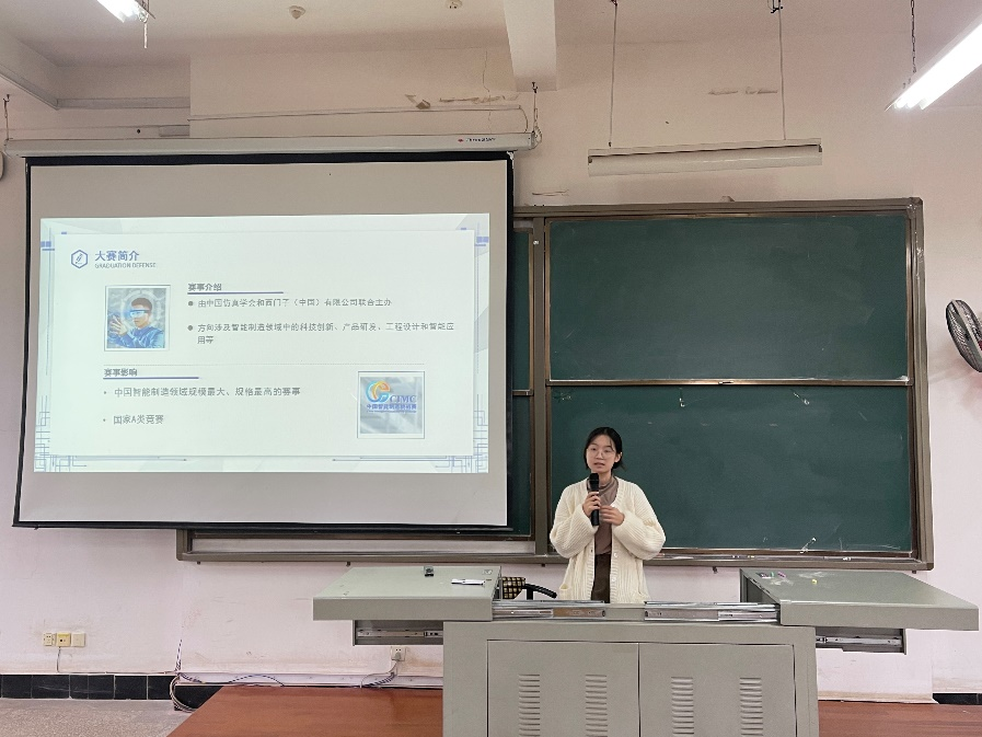 随后,宋志峰老师介绍国家自动化相关行业发展较快,复合型高级人才缺口依旧较大,西门子杯是行业A类赛事,鼓励同学们提前接触学科竞赛,为后续升学就业打好基础。西门子获奖学生代表陈梦雪、孙旗、杨顺、刘晓杰等同学依次上台,介绍所参与的赛道,以及亲身参赛经历,从参赛心态、学习内容等方面与同学们交流,为同学们答疑解惑,21级自动化同学表示对比赛内容有了更加清晰的认知。