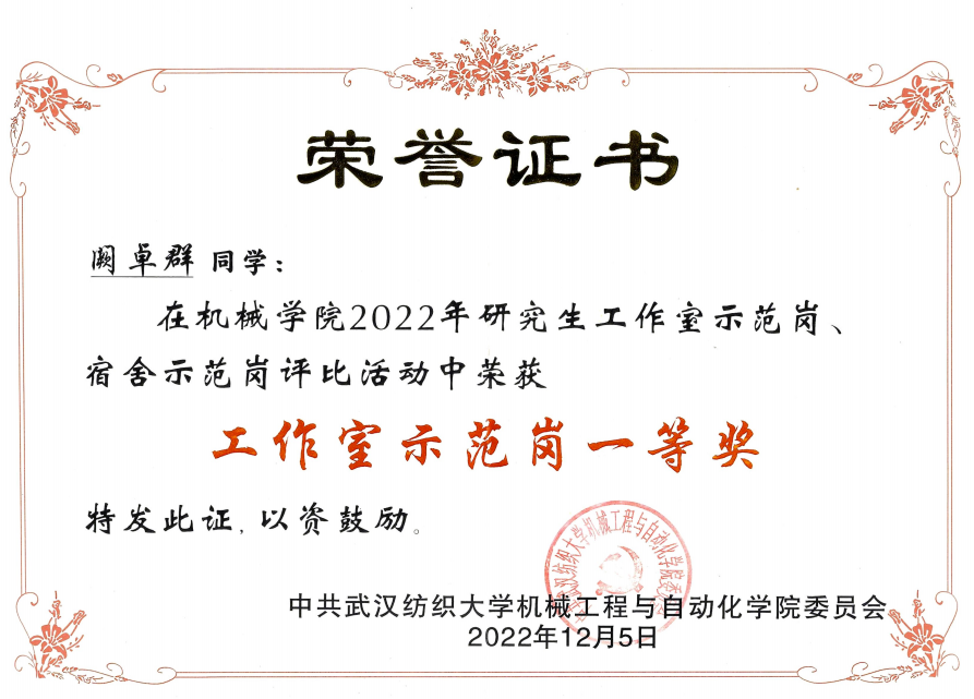 为喜迎党的二十大,奋斗新的征程,瞄准研究生教育质量,坚持立德树人,强化育人特色,丰富文化内涵。必赢bwin网址大全于2022年10月-11月举行了研究生工作室示范岗、宿舍示范岗评比活动中,充分加强研究生工作室和宿舍的教育管理,为研究生营造良好的学习、科研和生活环境,在实现中国梦的生动实践中放飞青春梦想。