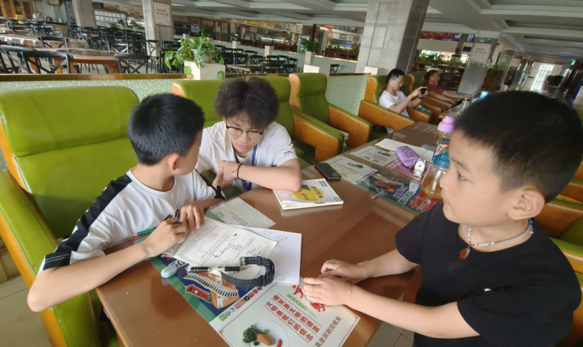为了响应共青团中央“关爱农民工子女”的号召,同时加强我们志愿者协会与社会的联系,践行“让爱心永驻校园,用真情回报社会”的宗旨,必赢bwin网址大全志愿者协会从3月4日启动的“七彩课堂——食堂辅导”支教活动至今已有三个月了。2023年6月4日,本学期最后一次“七彩课堂”在食堂圆满结束。