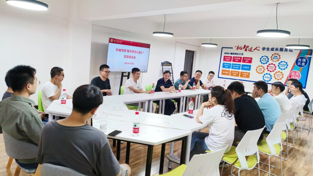 7月9日上午,我们机设098班校友返校与暑期留校学生代表在“机智过人”学生成长服务驿站畅谈学业发展,并慰问留校学生。