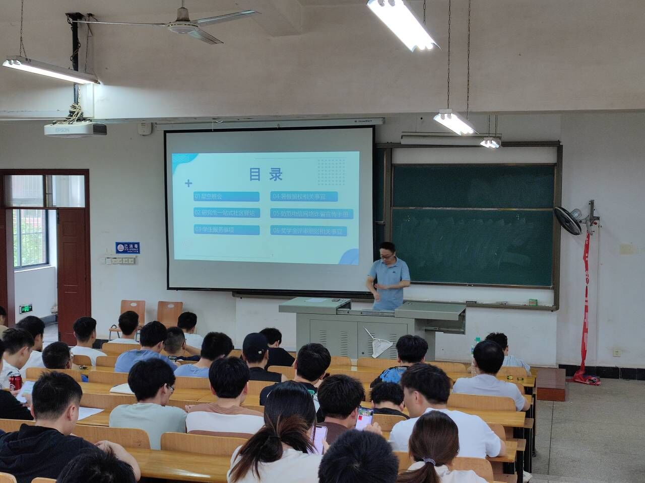 会上,谢超老师对“新时代共同成长”为主题的星空班会进行了布置,希望大家做好情绪管理、规律作息、积极行动、寻求心理支持等,介绍了纺大“研思”工作室,再次分享了学生服务事项信息,对暑期留校工作进行了安排,做好学生日常管理和安全教育,要切实防范电信网络诈骗,对学院国家奖学金、学业奖学金评审细则等相关事宜进行了解读,与大家进行了充分的交流和沟通,希望大家对照对标落实好自身发展规划和目标。