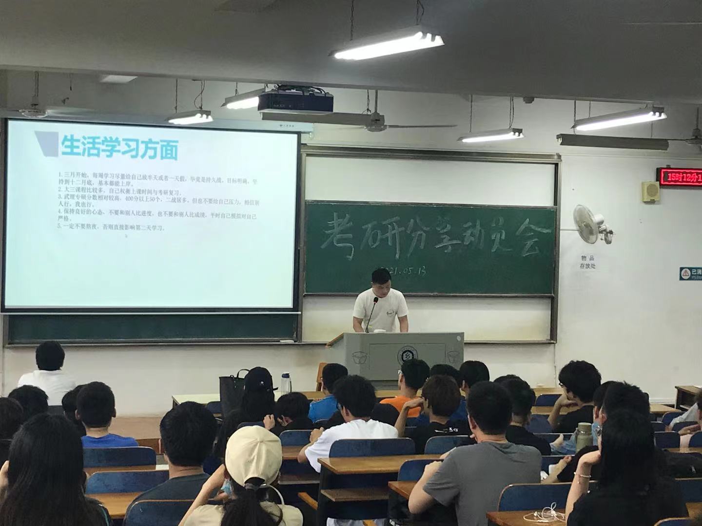 学生代表分别围绕自身在国家、学校及学院的资助政策的帮扶下的个人学习成长经历进行分享,并按照时间轴图文并茂地全面而详细展示了自己在备战考研期间的所做、所思、所感,从复习进度、难度、复习工具书、身心调适等方面丰富了19级同学们对考研备考的认知。
