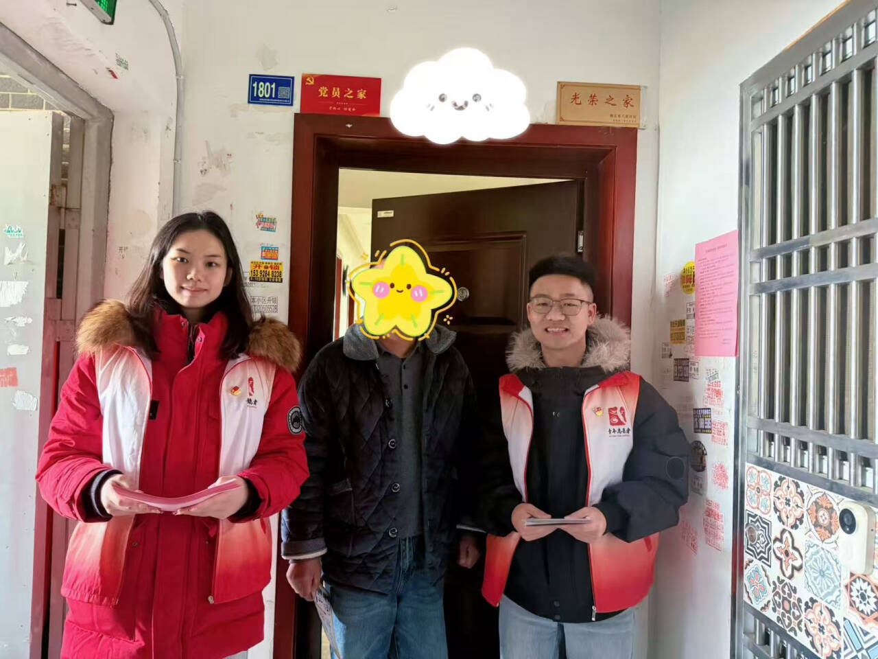 活动当日,同学们在社区工作人员的安排下,迅速分为多个小组投入工作。在社区党群服务中心,他们耐心协助处理文书整理、信息核对与通知发放等事务,亲身体验基层工作的细致与繁忙。与此同时,另一组同学携带慰问品与宣传资料,深入居民家中开展年前走访。他们不仅为社区老党员和部分家庭送去新春的问候,还结合生活实际,细致讲解冬季用火用电安全、防范网络诈骗等知识,增强了居民的自我防护意识。