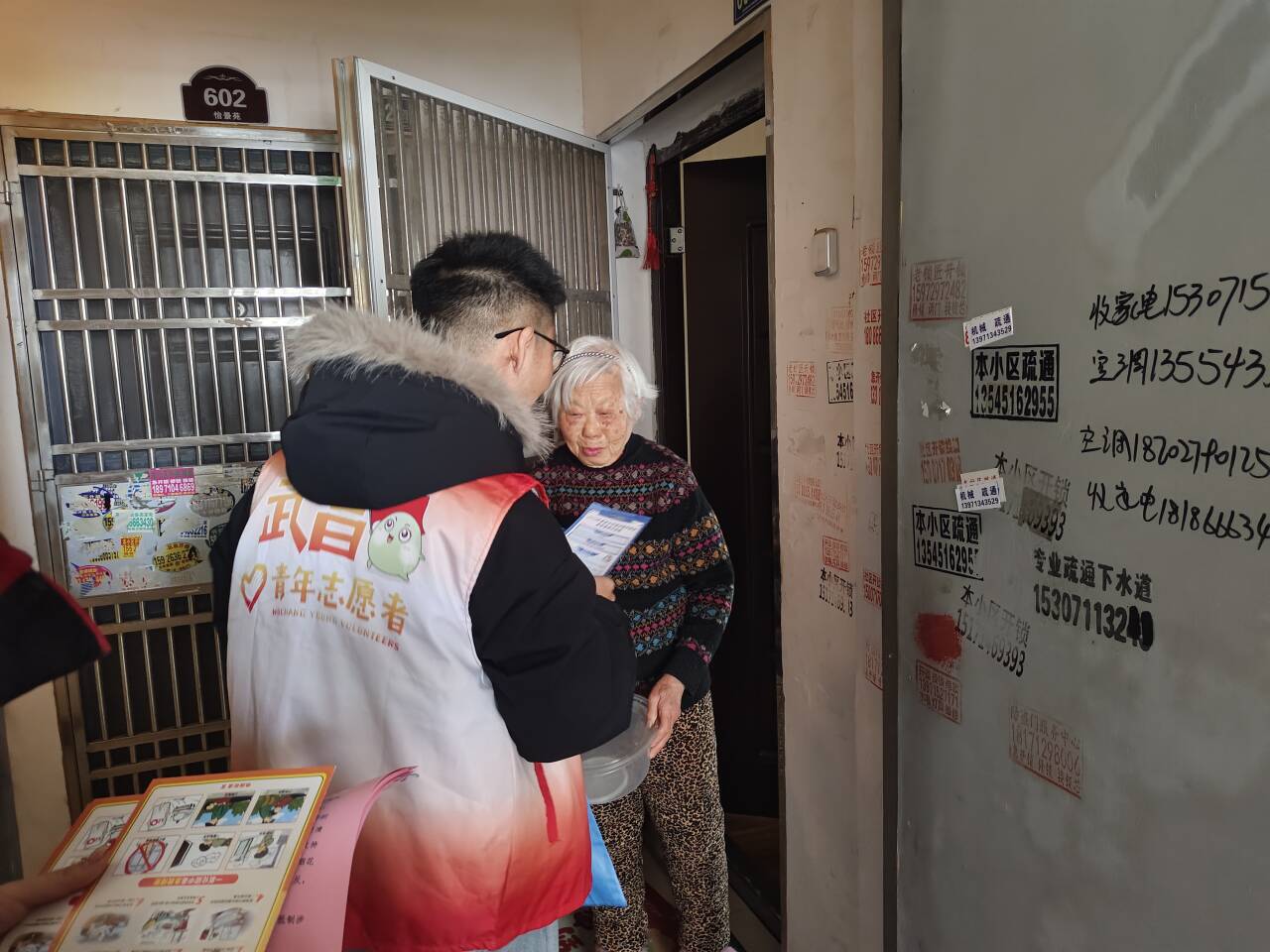 针对老旧小区楼道杂物堆积这一常见安全隐患,同学们与社区工作者并肩协作,开展了集中清理整治。他们逐一排查楼栋,耐心与居民沟通,搬运、清理废弃家具和堆积物,在楼道对居民进行宣传,使楼道环境焕然一新。活动中,同学们尤为关注特殊群体,特意前往几位孤寡老人家中,帮助打扫室内卫生,更围坐一旁陪老人拉家常、问冷暖,用真诚的陪伴驱散了冬日的孤寂,让温情在社区默默流淌。